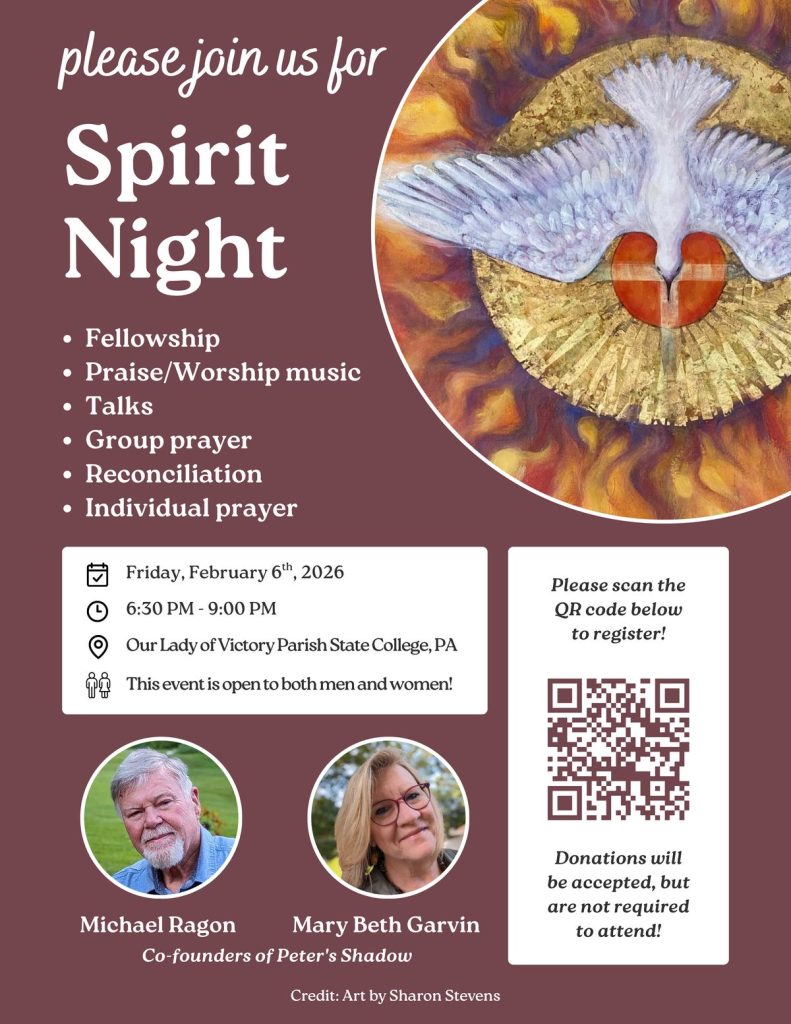BONUS! We are holding a Spirit Night for all parishioners the evening before the Women’s Conference. You can register at the same link above or by scanning the QR code in the image.