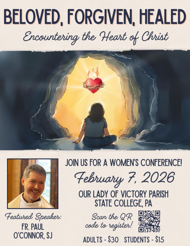 Our Lady of Victory is hosting a Women’s Conference on February 7th. Click the link below or scan the QR code in the image to register.